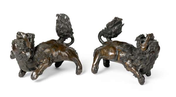 PAIR OF CHINESE BRONZE BUDDHIST LION-DOGS