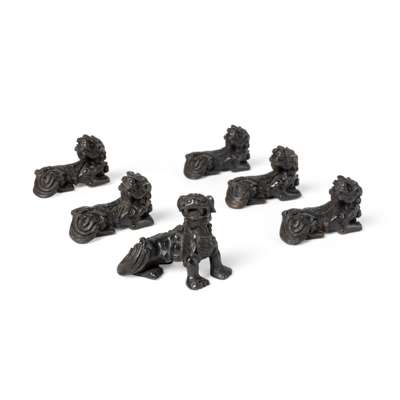 明末至清 銅鑄佛獅紙鎮(一組六件)
