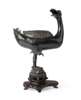 RARE CHINESE BRONZE INCENSE BURNER IN THE FORM OF A DUCK STANDING ON TOAD