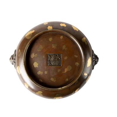 [PRIVATE BRITISH COLLECTION, LONDON] CHINESE GOLD-SPLASHED 'LION-HEAD' BRONZE CENSER