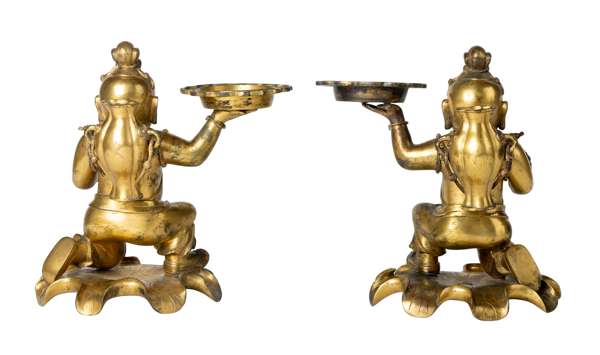 清乾隆款及年代 銅鎏金和合二仙燭台(一對)