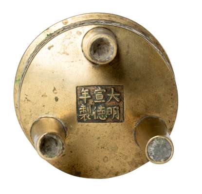 清 宣德款 銅鑄梅樹紋鼎式冲耳三足爐