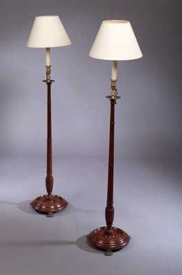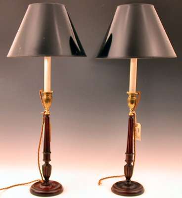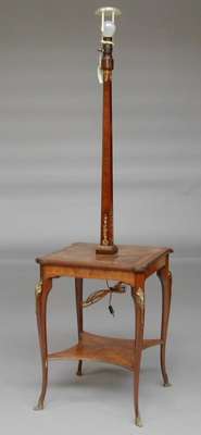 A Louis XVI style mahogany and kingwood lamp and table
