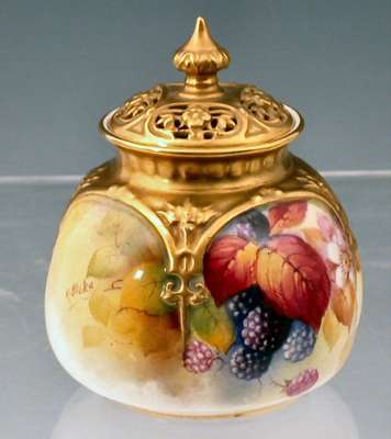A Royal Worcester small globular fluted pot pourri vase and cover