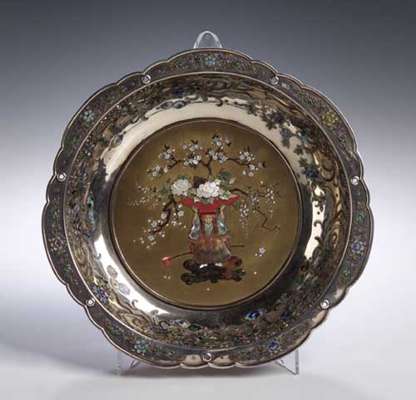 A fine silver and Shibayama bowl of Kikugata form