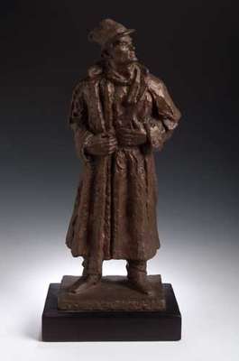 A Japanese bronze warrior figure, Meiji period, signed