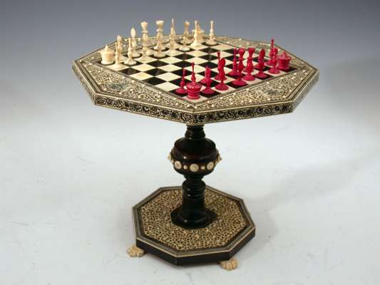 An early 19th century Vizagapatan ivory and bone veneered miniature chess table