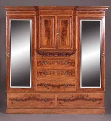 An Edwardian mahogany and chequer banded bedroom suite