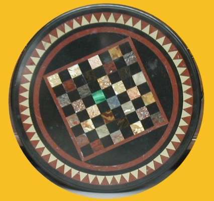 A circular specimen marble table top