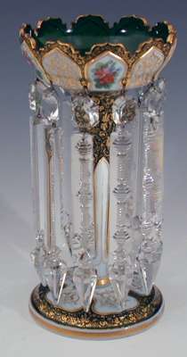 A pair of late 19th century Bohemian green glass lustres