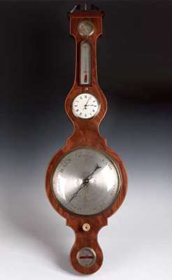 An early 19th century mahogany cased banjo barometer
