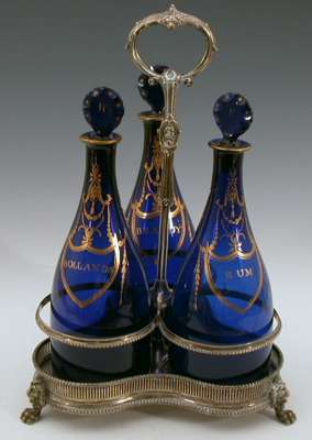 A set of three Georgian blue glass decanters