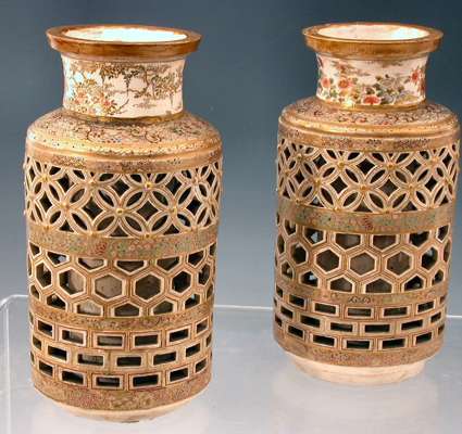 A pair of Japanese reticulated Satsuma vases