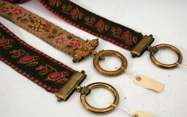 Three 19th century embroidered bell pulls
