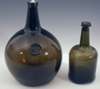 the short narrow tapered neck above cylindrical body with seal and relief initials 'A Mc G', date 1811, 31cm high; another similar green glass body of cylindrical form, tapering to narrow cylindrical neck