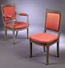 including two armchairs, with gilt brass anthemion and palmette castings, the square backs with inset raised squab above bow front stuffover seats and square section front legs terminating in cast brass front paw feet (6)