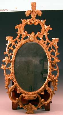 the later oval plate enclosed within a graduated frame carved and pierced with a border of flowering foliage, rocaille work and C scrolls and surmounted by Prince of Wales feathers