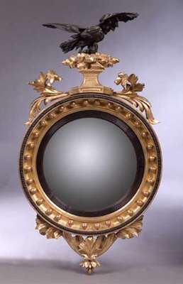 A Regency gilt and bronzed convex wall mirror