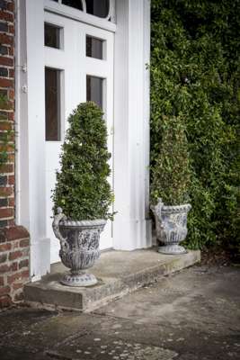 THREE SIMILAR BAROQUE STYLE LEAD URNS