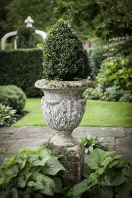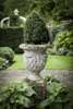 of campana form carved with rising acanthus raised on associated square plinths (3)