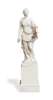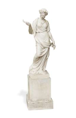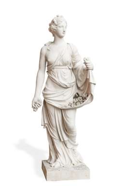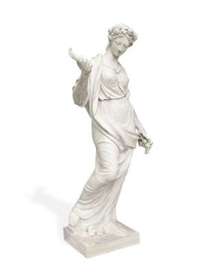each modelled as a classical female, one representing SUMMER, the other AUTUMN, signed verso, raised on square plinths (2)