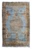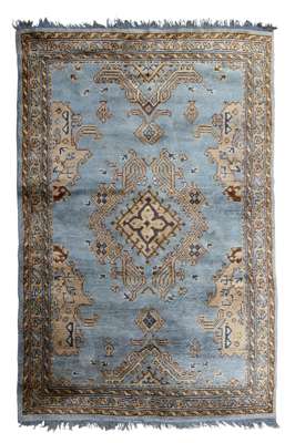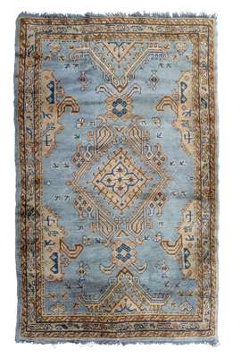 each with light blue field with camel lozenge medallion flanked by half palmettes, within narrow camel stylised vine border between brown bands (4)
