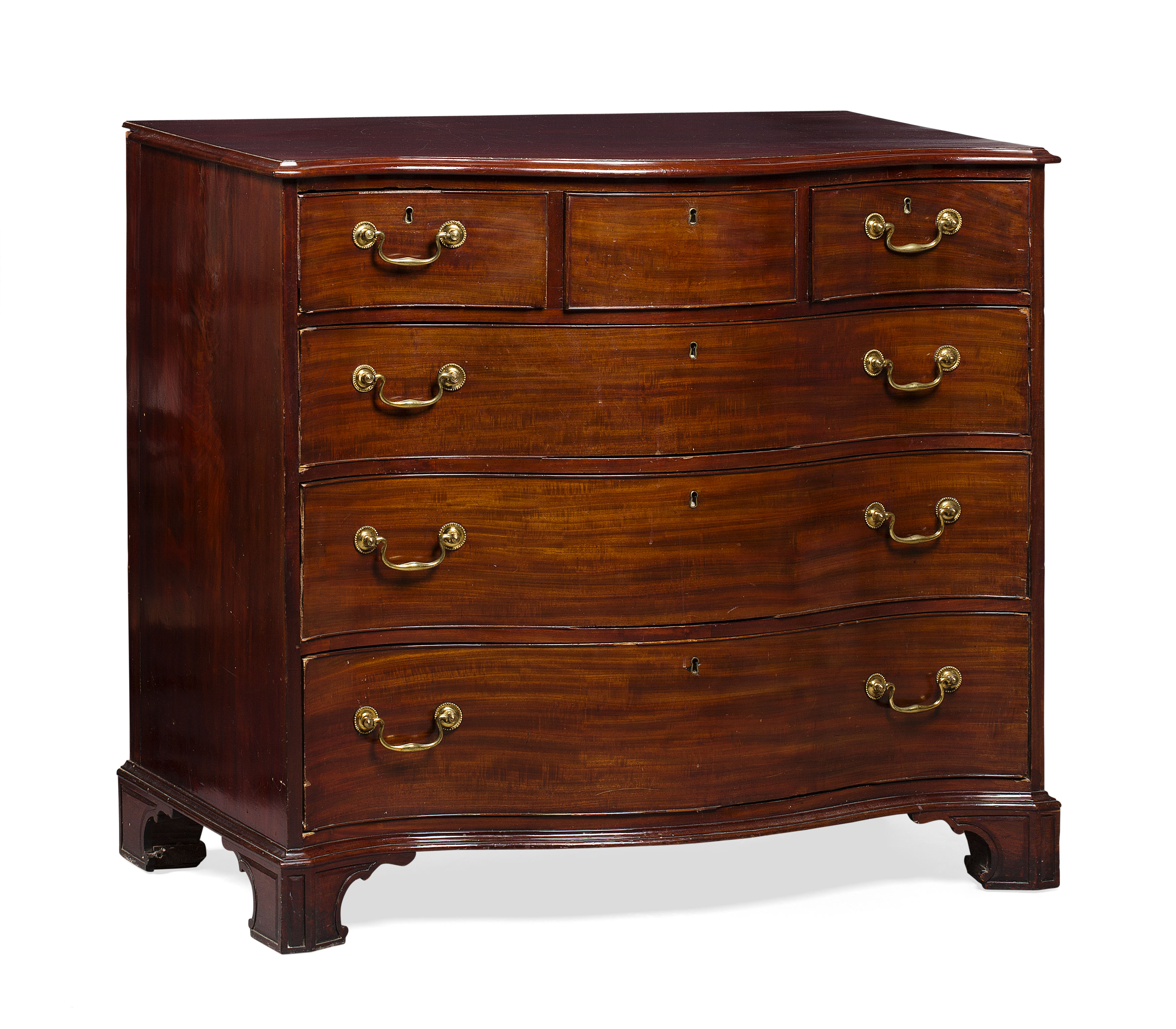 the serpentine top over three short drawers and three long drawers, on bracket feet