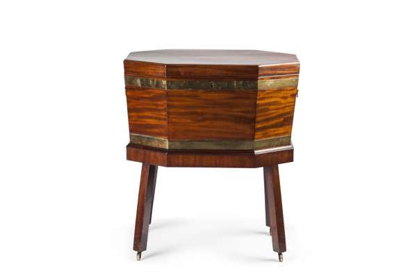 LARGE GEORGE III MAHOGANY OCTAGONAL WINE COOLER ON STAND