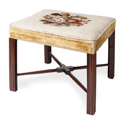 GEORGE III MAHOGANY UPHOLSTERED STOOL