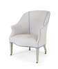upholstered in blue and white chintz and raised on painted square tapered legs terminating in leather and brass caps and castors