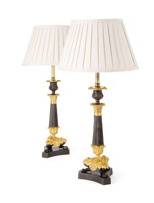 PAIR OF REGENCY PATINATED AND GILT BRONZE LAMPS