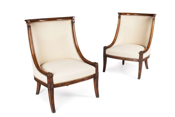 PAIR OF REGENCY STYLE MAHOGANY AND UPHOLSTERED BERGERES