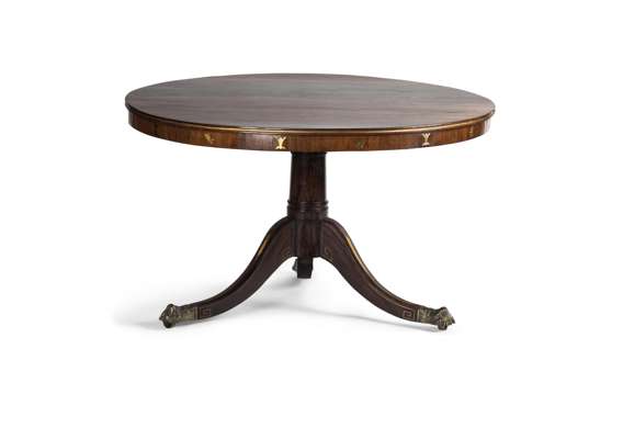 REGENCY ROSEWOOD AND BRASS INLAID BREAKFAST TABLE