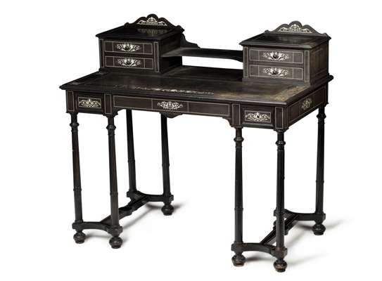 VICTORIAN EBONISED AND IVORY INLAID DESK
