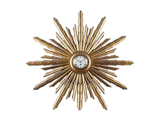 the carved giltwood 'sunburst' frame enclosing the single train movement with circular enamelled dial
