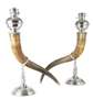PAIR OF WHITE METAL MOUNTED HORN LAMP BASES