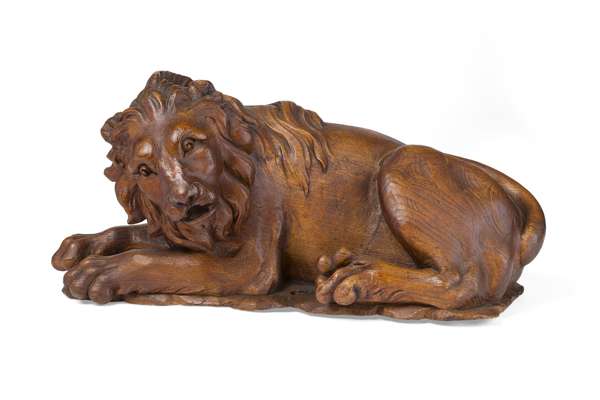 LARGE SWISS CARVED OAK FIGURE OF A LION