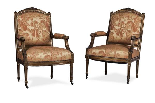 PAIR OF LOUIS XVI STYLE GILTWOOD ARMCHAIRS