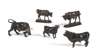 dark brown patina, comprising two models of cows and three bulls, one bull with ivory horns, all realistically modelled, unsigned (5)
