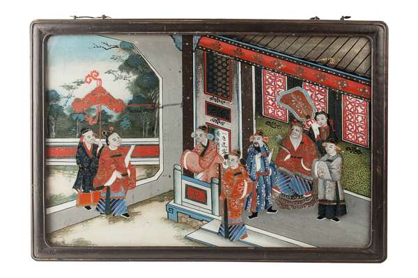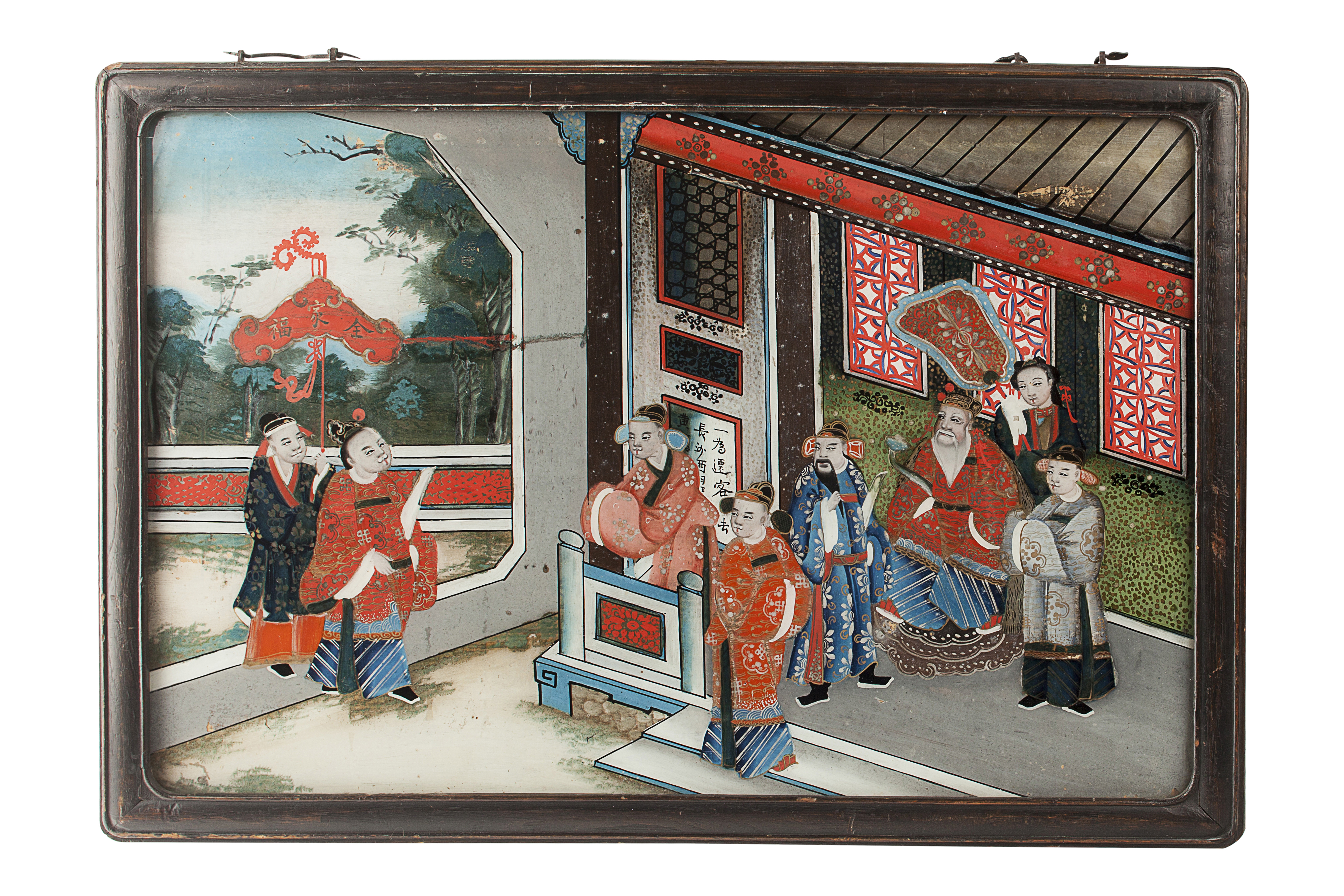 TWO CHINESE REVERSE PAINTINGS ON GLASS