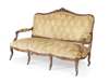 VICTORIAN LOUIS XVI STYLE WALNUT AND UPHOLSTERED SETTEE
