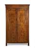 the moulded cornice above two panelled doors enclosing hanging space, raised on stile feet
