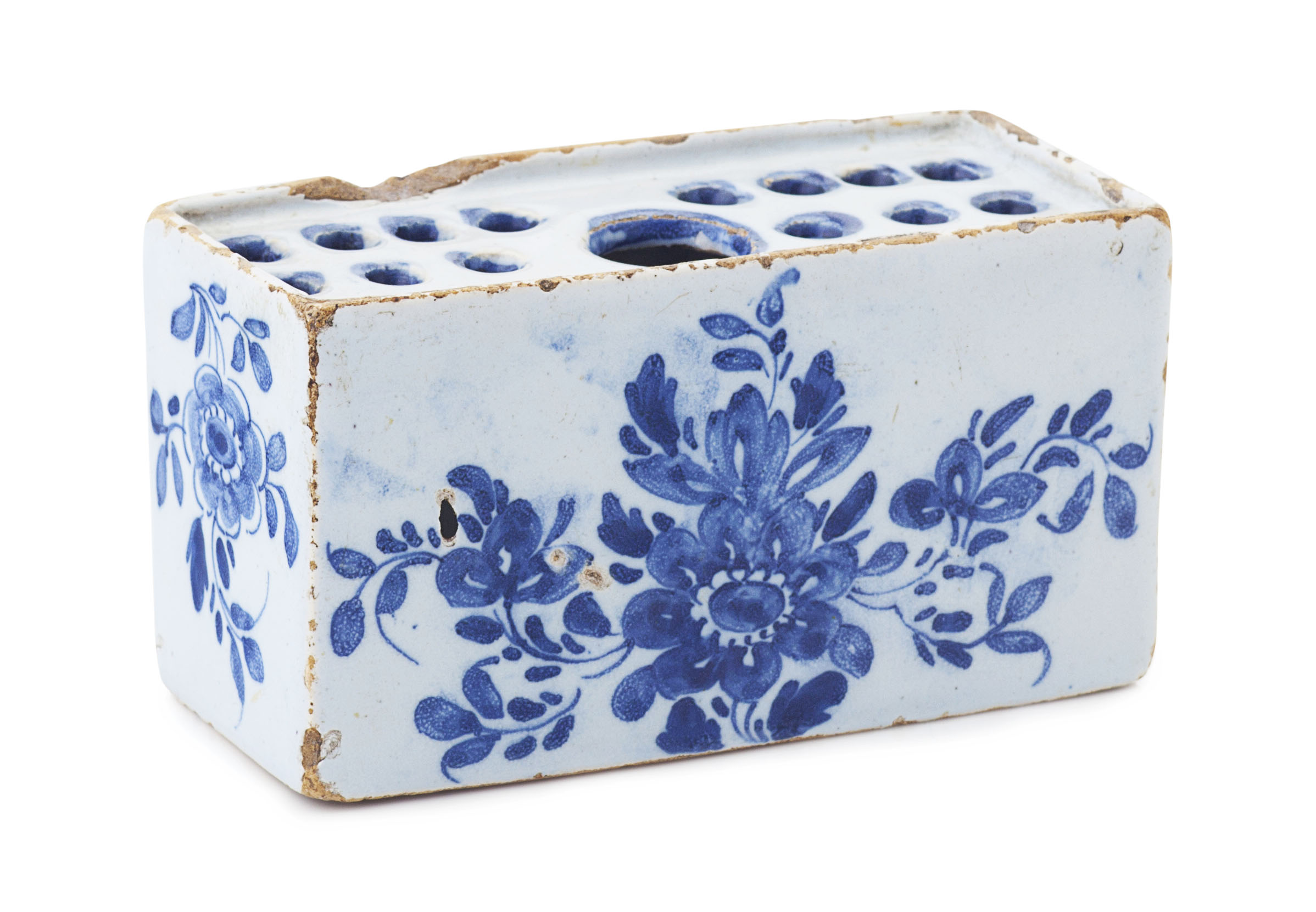 ENGLISH DELFT BLUE AND WHITE FLOWER BRICK