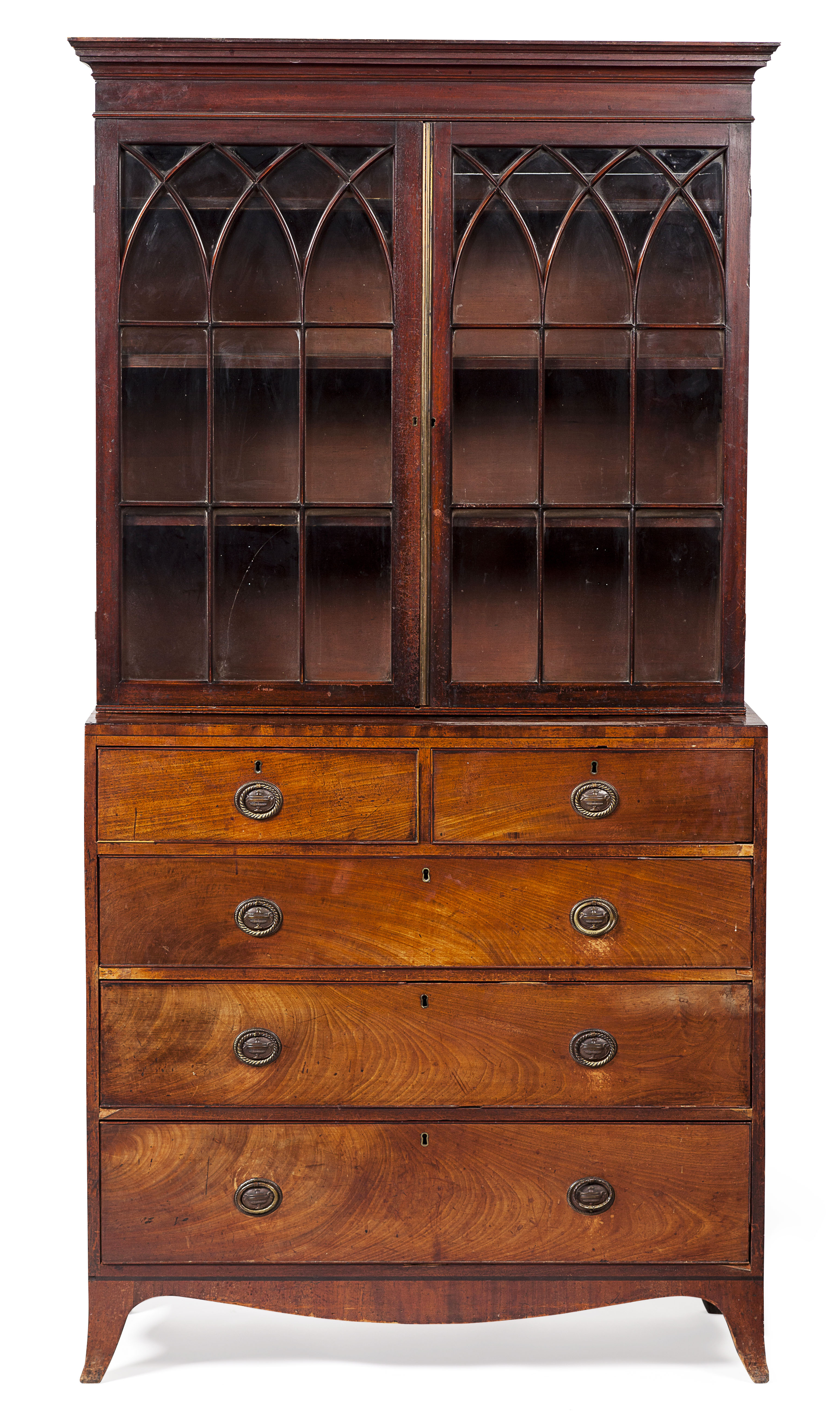 GEORGE III MAHOGANY BOOKCASE ON CHEST