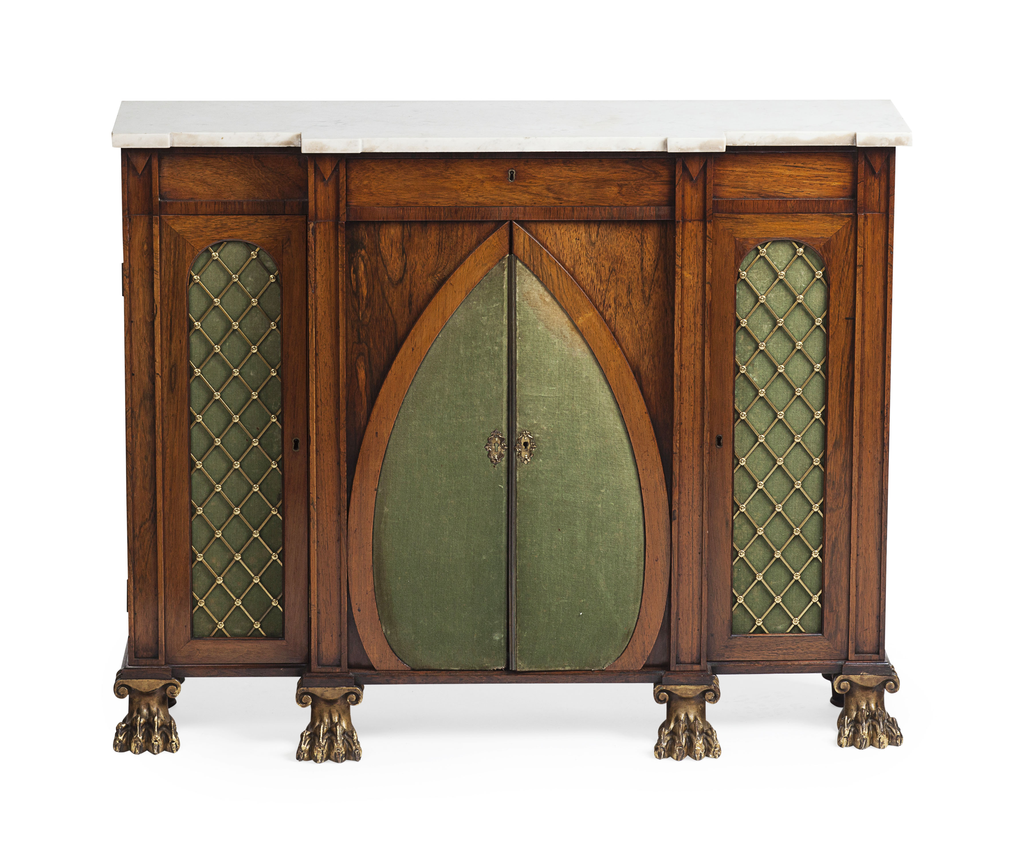 REGENCY ROSEWOOD MARBLE TOPPED CREDENZA