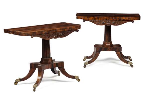 PAIR OF REGENCY ROSEWOOD FOLDOVER CARD TABLES