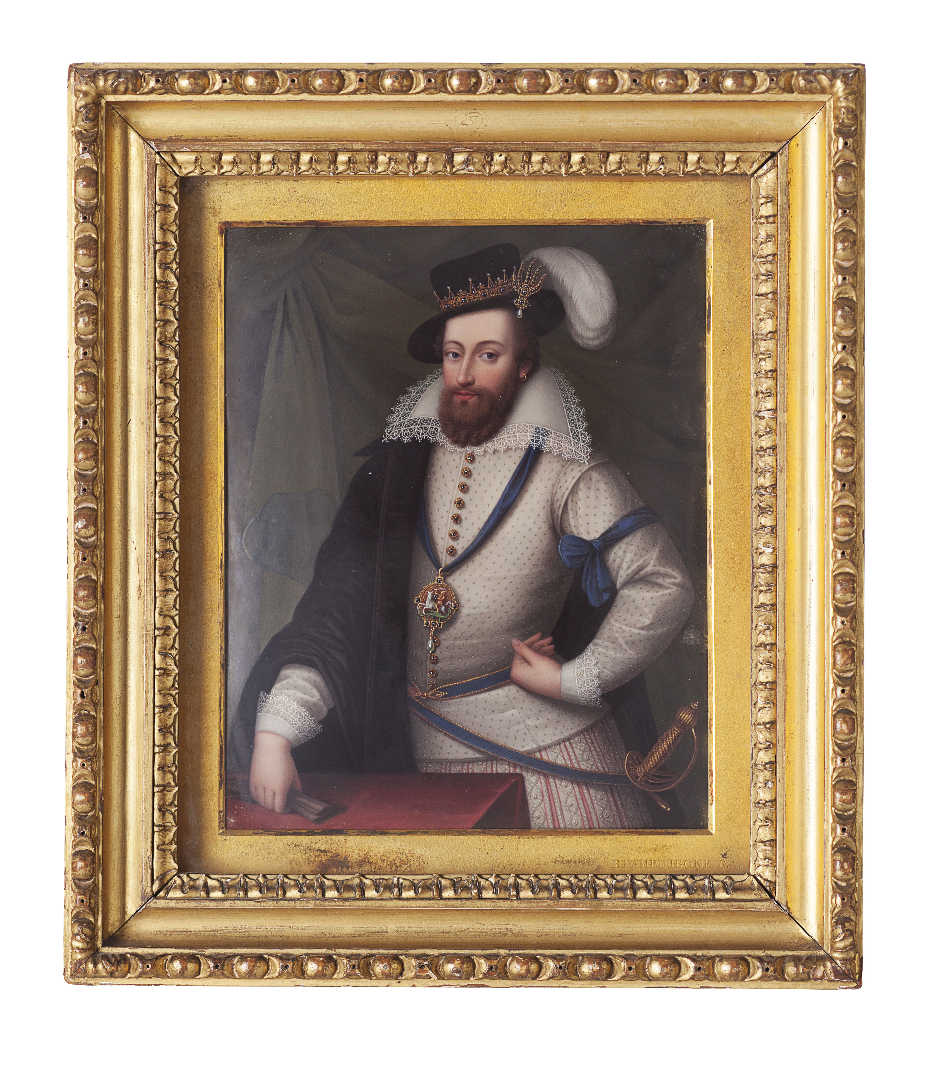 The portraits in our sale are prime examples of Bone's prowess, skill and attention to detail. The extravagant portrait of a man wearing a white ostrich plume hat, originally believed to be Robert Dudley, Earl of Leicester but now identified as possibly King Christian IV of Denmark or Edward Somerset, 4th Earl of Worcester, displays all the confidence and swagger of a gentleman at the top of his social and political world. Bone's annotated grid sketch for this large and fantastic portrait, a copy of an original at Knole House, survives and is also in the collection of National Portrait Gallery.