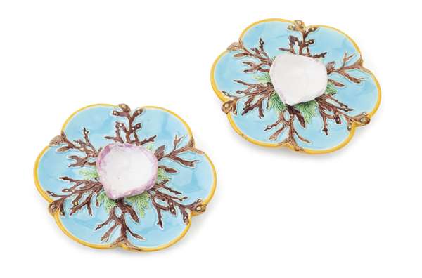 PAIR OF GEORGE JONES MAJOLICA OYSTER DISHES