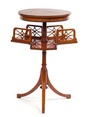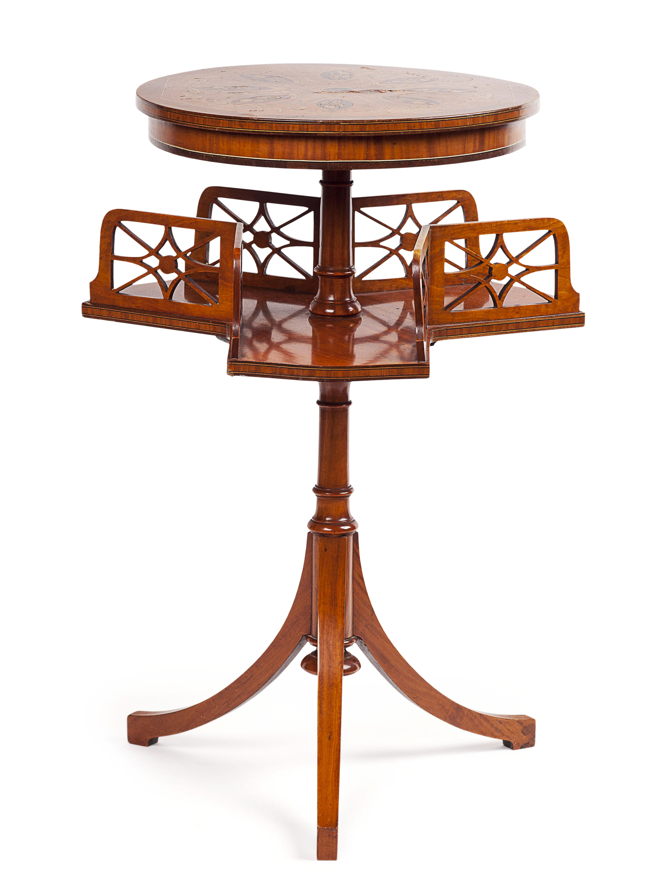 EDWARDIAN SATINWOOD AND INLAY TRIPOD BOOKSTAND