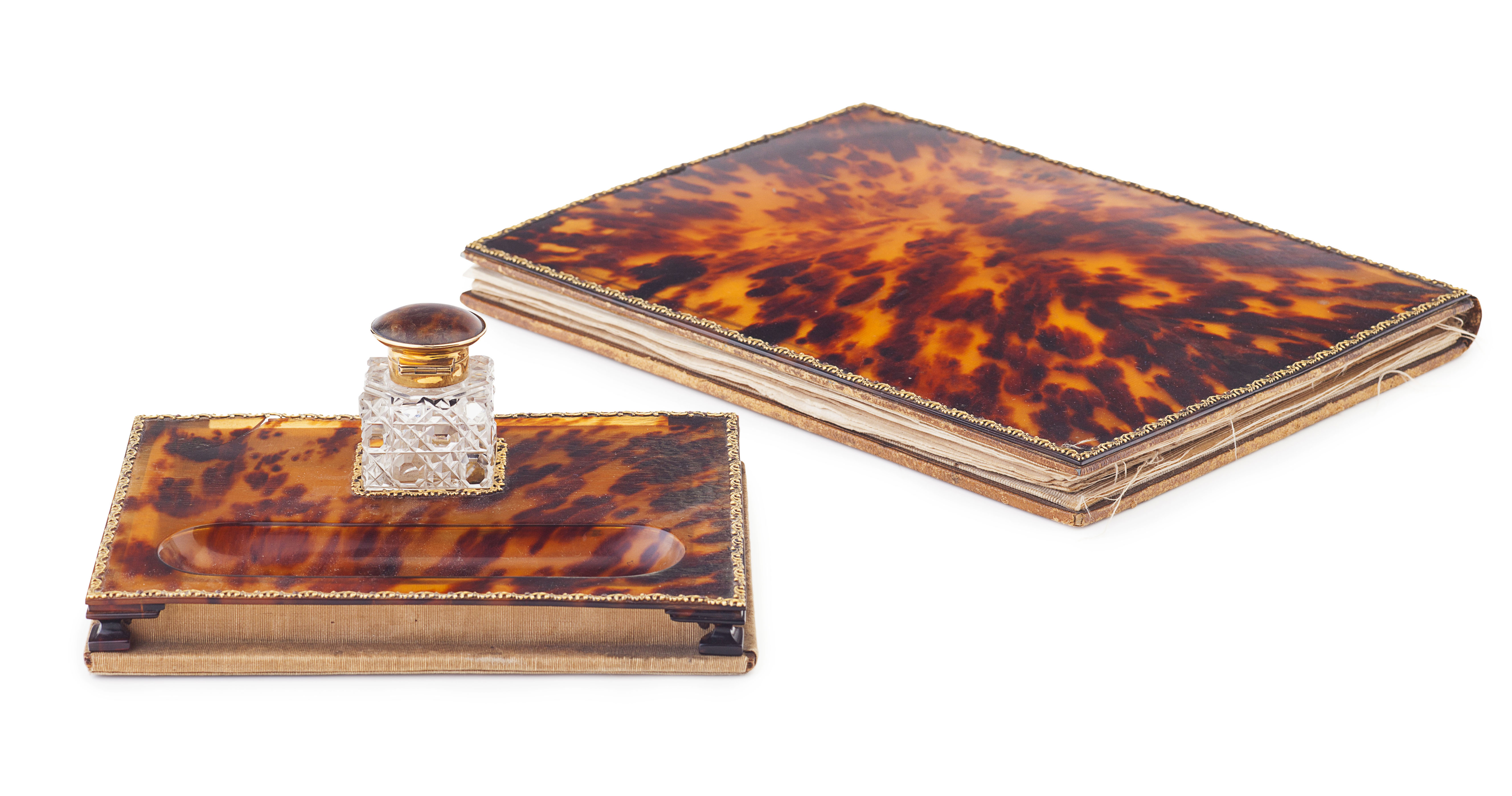GOLD MOUNTED TORTOISESHELL DESK SET, RETAILED BY ASPREY OF LONDON Y